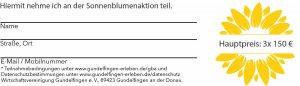 Registrieren Sie sich mit dem Formular auf der Sonnenblumentüte oder weiter hier unten auf der Website offline oder online Formular. Offline Anmeldungen können Sie in allen Geschäften abgeben.