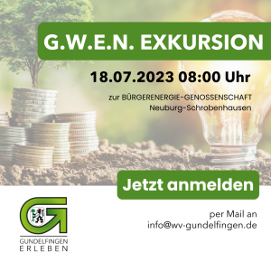 Exkursion am 18.07.2023: G.W.E.N. – Gundelfingen. Wirtschaftlich. Energiesicher. Nachhaltig. Einladung zum Besuch der BÜRGERENERGIE-GENOSSENSCHAFT in Neuburg-Schrobenhausen.