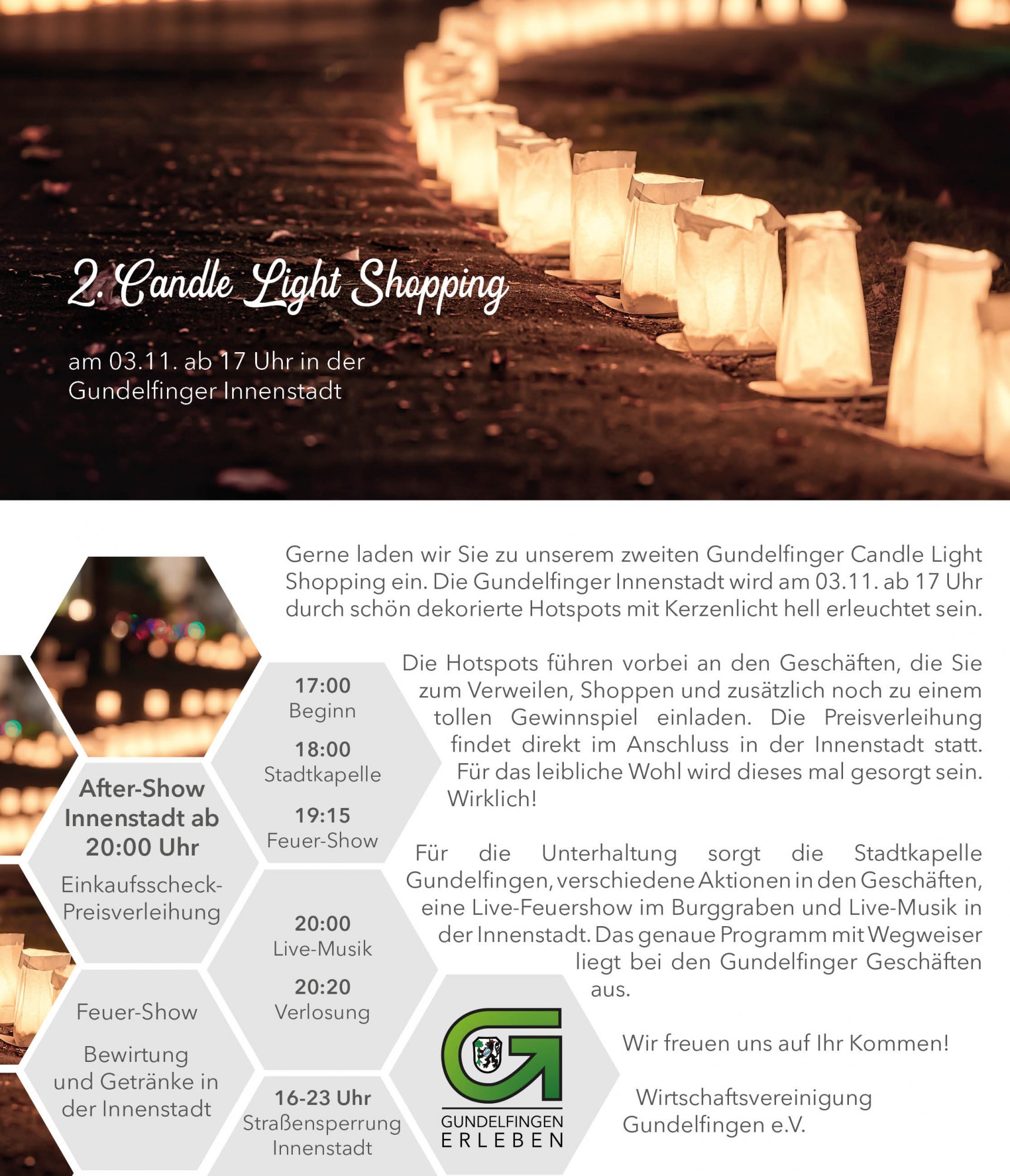 Candle Light Shopping 2023 03. November 17:00 23:00 Startseite Veranstaltungen Candle Light Shopping 2023